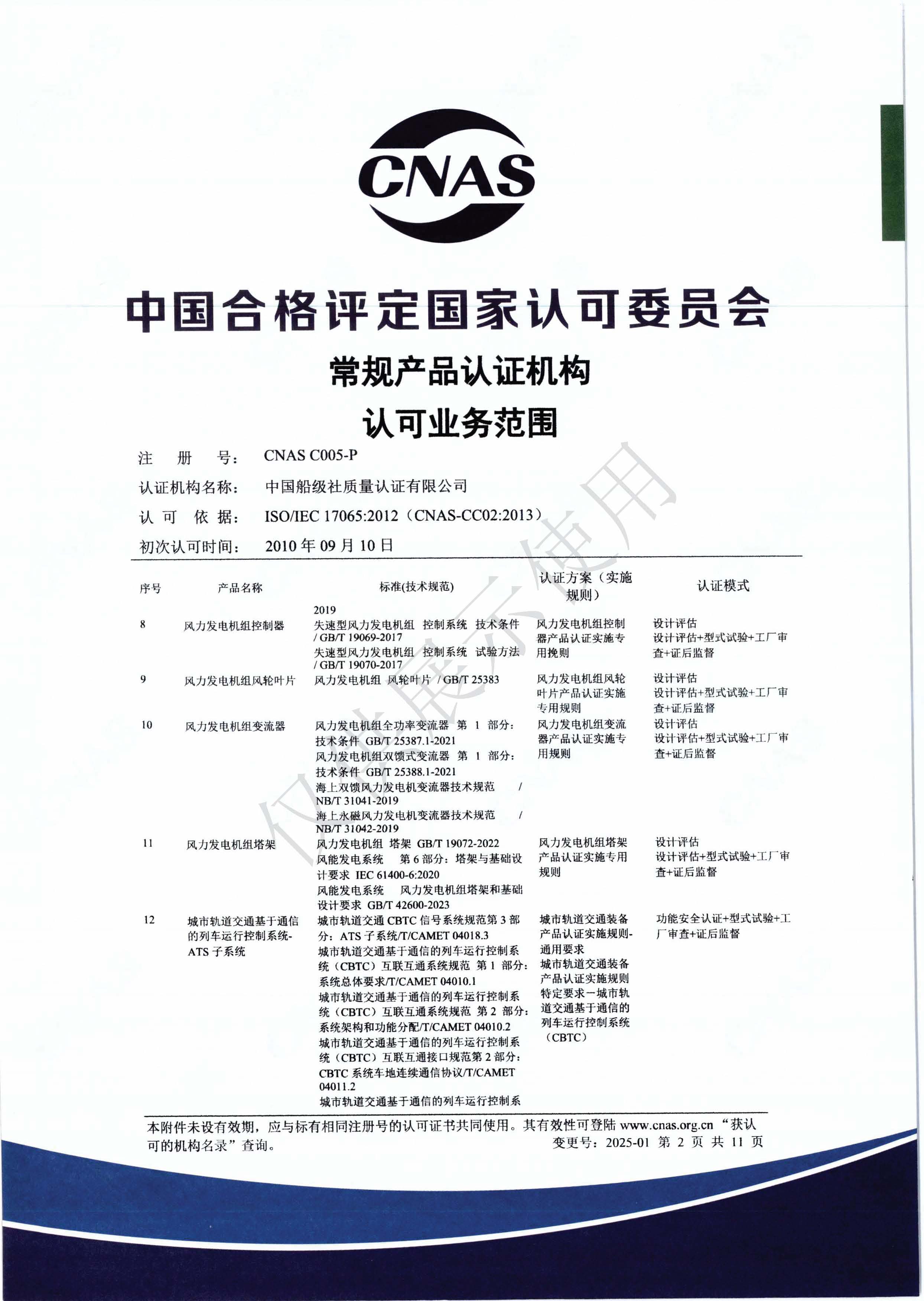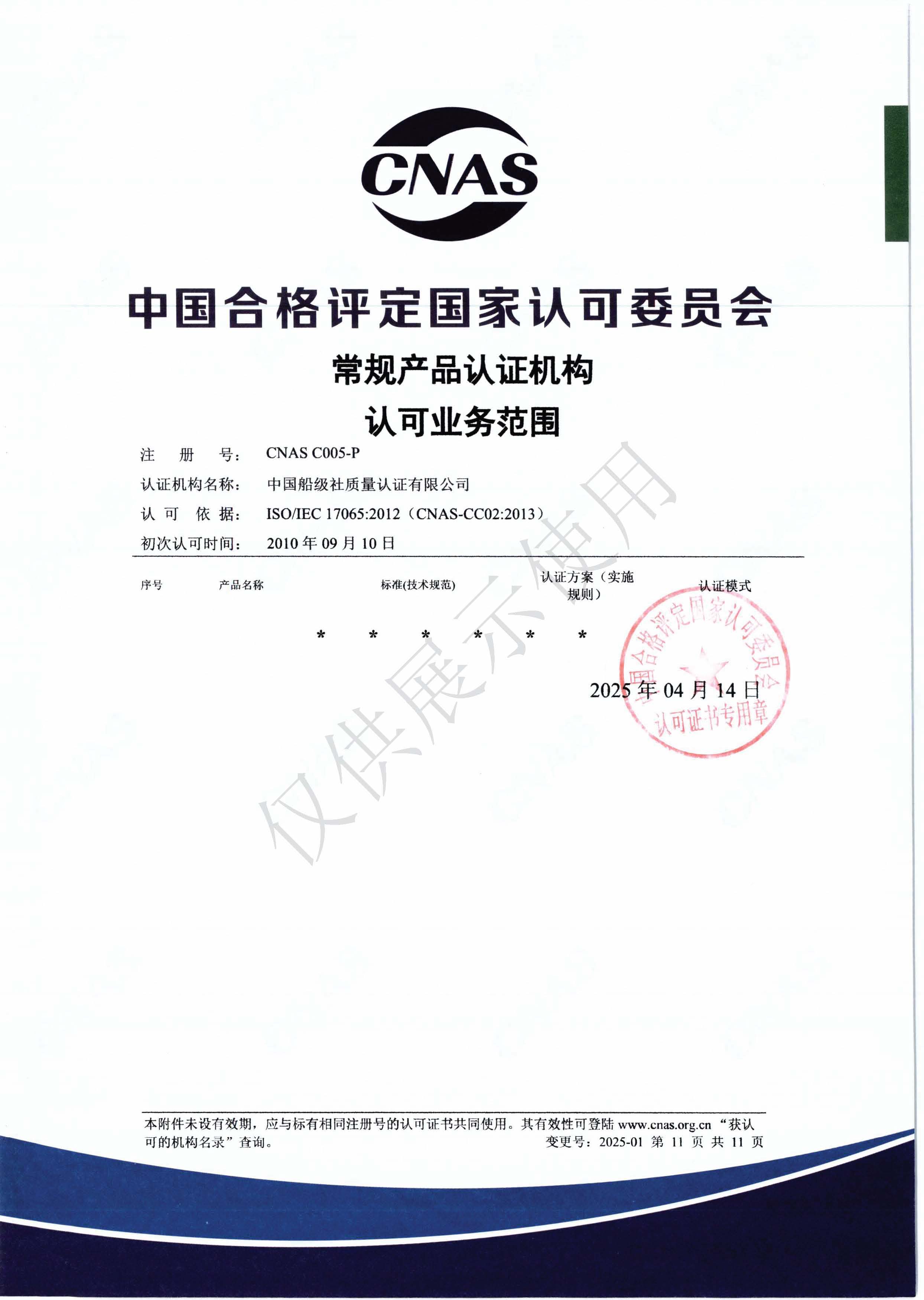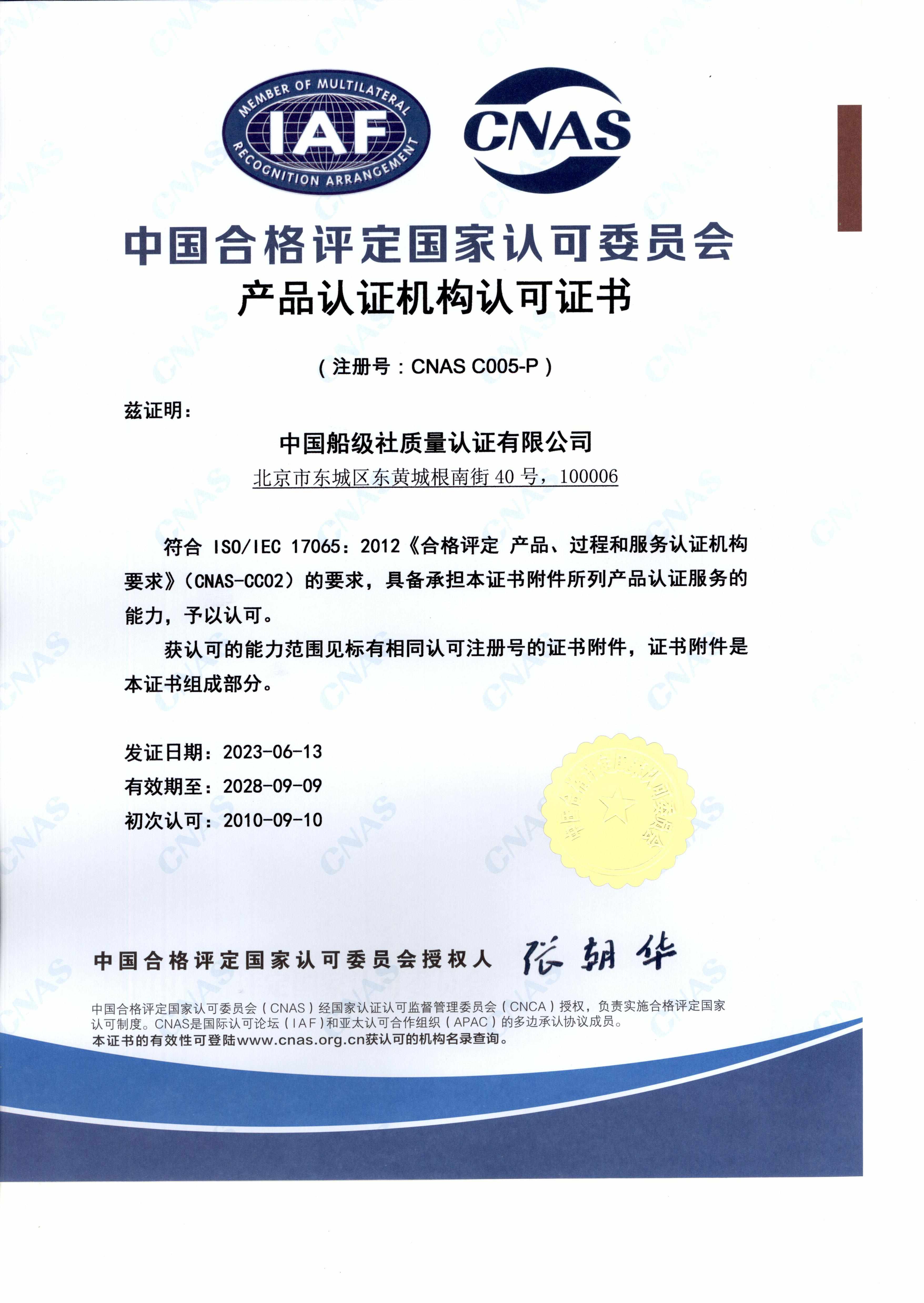 產品認證機構認可證書