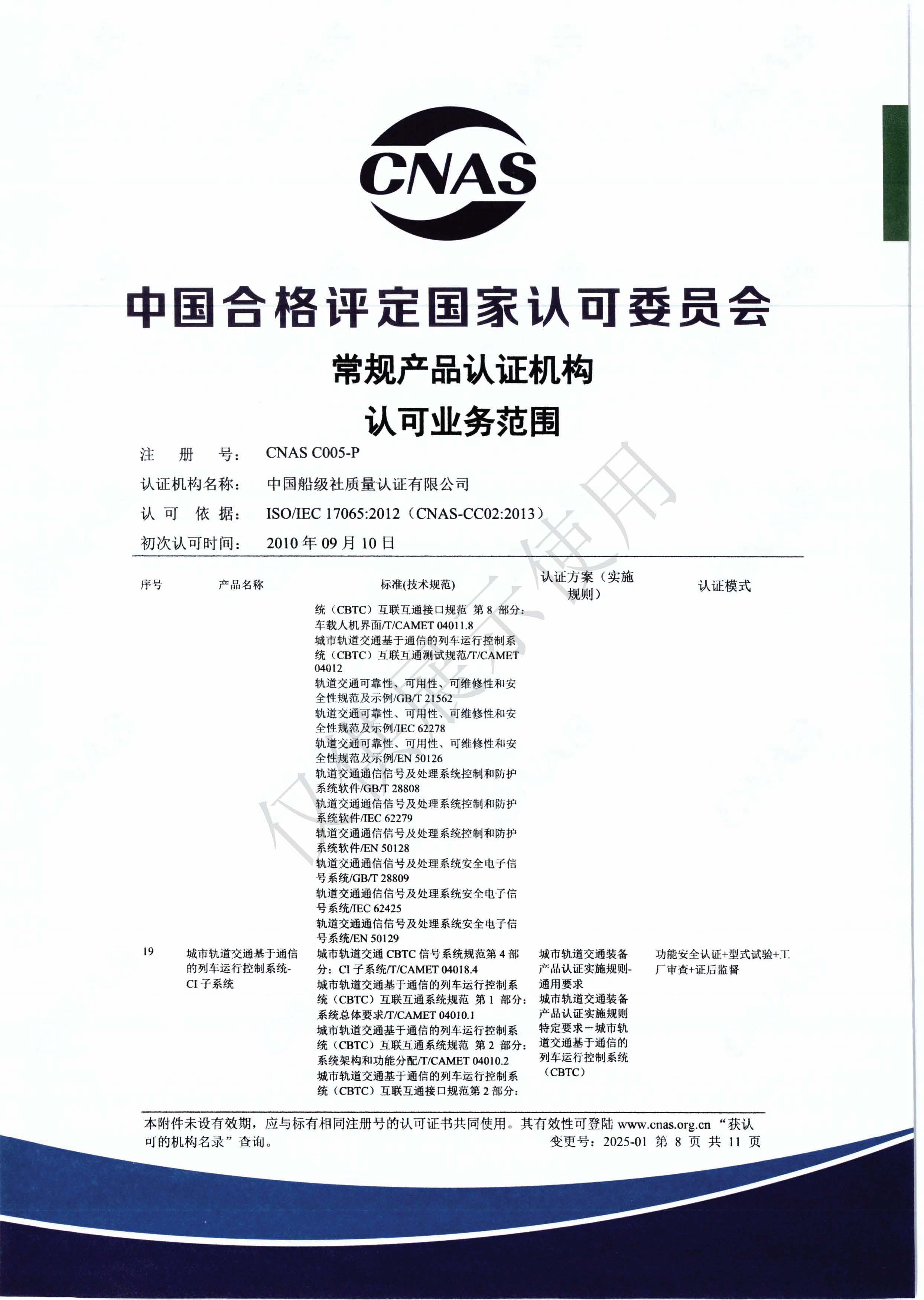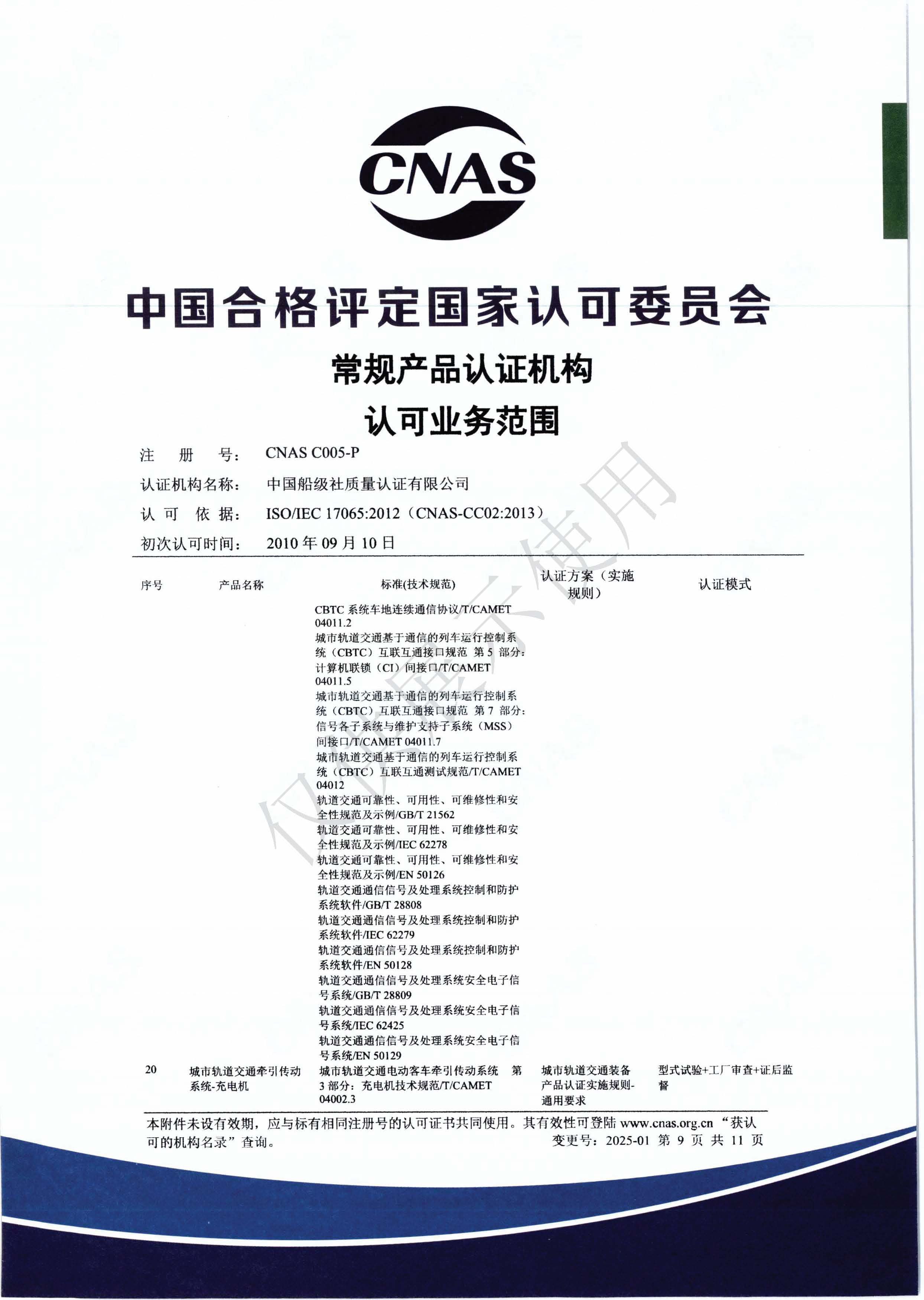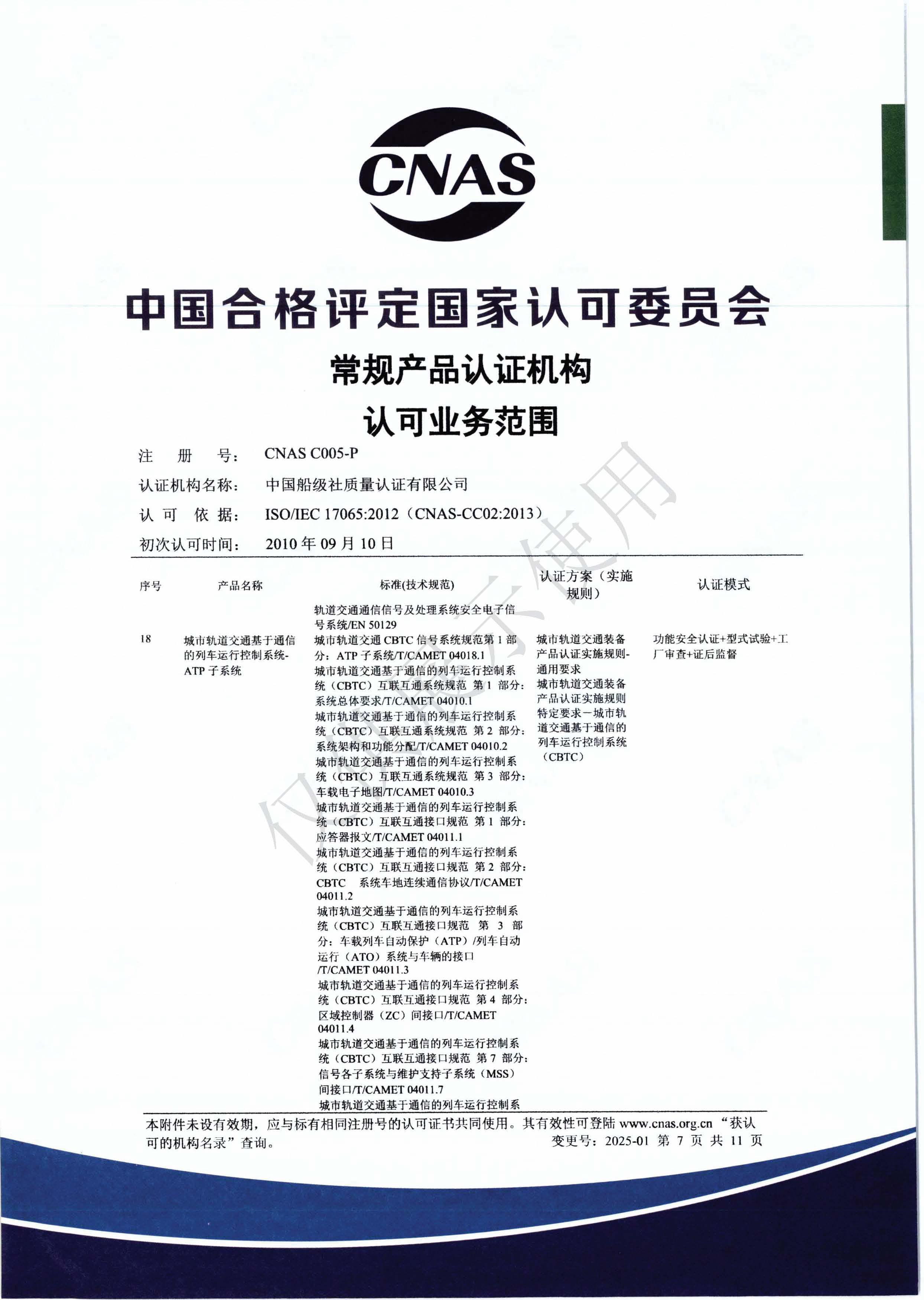 產品認證機構認可證書