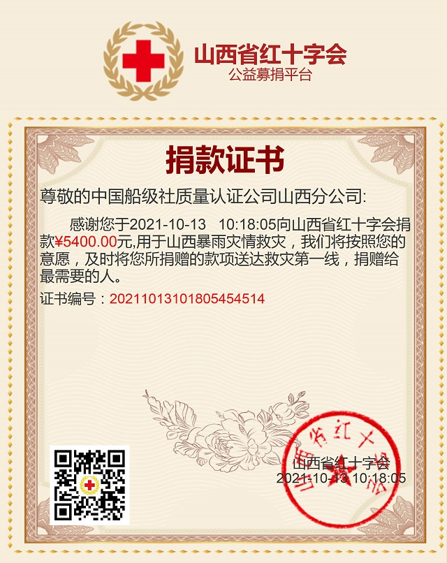 面對突如其來的災害,山西各界團結(jié)一心,風雨同舟,共同抗擊災情。10月12日,山西分公司向全體人員發(fā)起捐款倡議,全體員工紛紛伸出援助之手,以責任回報社會,在短短一天之內(nèi)收到捐款5400元。隨后,山西分公司將捐款全部通過山西省紅十字會捐助災區(qū),為災區(qū)搶險救災和家園重建獻出一點愛心,與山西各界攜手共“晉”,共建美好家園。