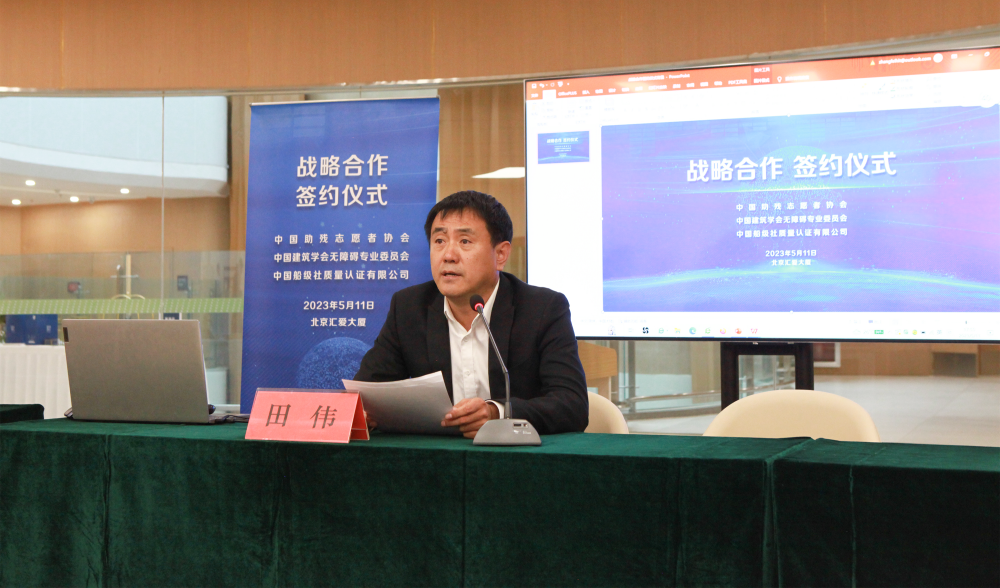 簽約儀式后,總經理田偉代表公司發言,他向以呂世明主席為代表的推動中國無障礙環境建設工作的同仁致以了崇高的敬意。他表示,公司作為認證認可領域的先行者和實踐者,作為行業的“中”字頭企業,既有強烈的意愿,也有義不容辭的責任同中國助殘志愿者協會和中國建筑學會無障礙專業委員會,一起為推動中國無障礙環境建設貢獻力量。公司將推動落實無障礙環境標準體系建設工作,助力無障礙環境認證工作在各行業領域落地生根,為無障礙環境建設工作的高質量發展保駕護航。