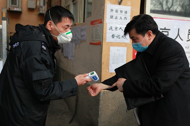 梁雪峰處長一行對認(rèn)證公司食堂、辦公樓、黃城根社區(qū)的疫情防控管理、防疫物資儲備等情況進(jìn)行了視察。