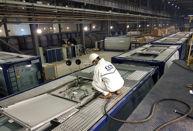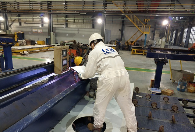 按照東方國際集裝箱(連云港)有限公司的檢驗申請,CCSC驗船師在確保自身身體狀況良好、做好安全防護措施后開展了一天的檢驗工作,從圖紙審查到到原材料檢驗,再到各項試驗,驗船師關注每一個細節和節點,確保產品有質有量穩定生產。