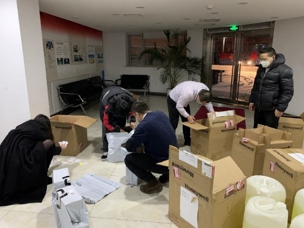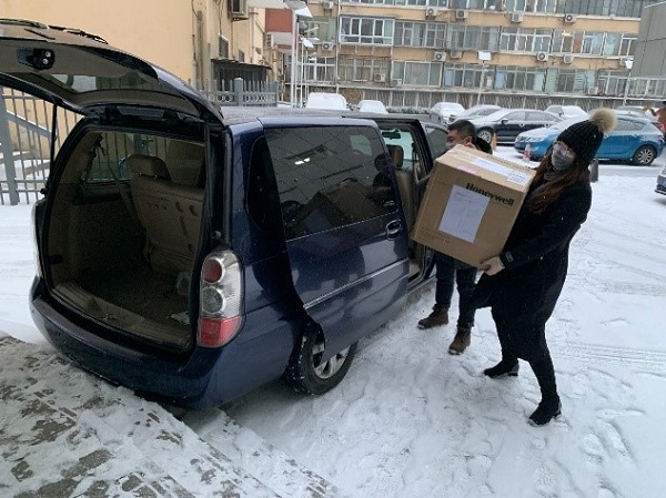 疫情就是命令,防控就是責(zé)任。在北京初春的第一場(chǎng)大雪中,杜愔頔、孫可佳驅(qū)車前往機(jī)場(chǎng)運(yùn)取防護(hù)口罩。在排隊(duì)等候的2個(gè)小時(shí)中,他們沒有怨言,因?yàn)樗麄冎溃缫环昼娔玫椒雷o(hù)口罩,就可以早一分鐘送到員工的手上,就能夠早一分鐘為大家的生命健康安全提供應(yīng)有的保障。口罩運(yùn)抵公司總部后,辦公室值班員工齊上陣,將防護(hù)口罩分裝打包,準(zhǔn)時(shí)寄送給各分公司。