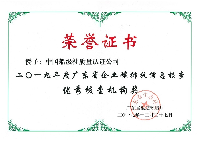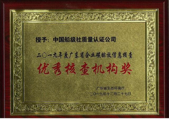 我司獲廣東省生態環境廳頒發2019年度廣東省企業碳排放信息核查優秀核查機構獎