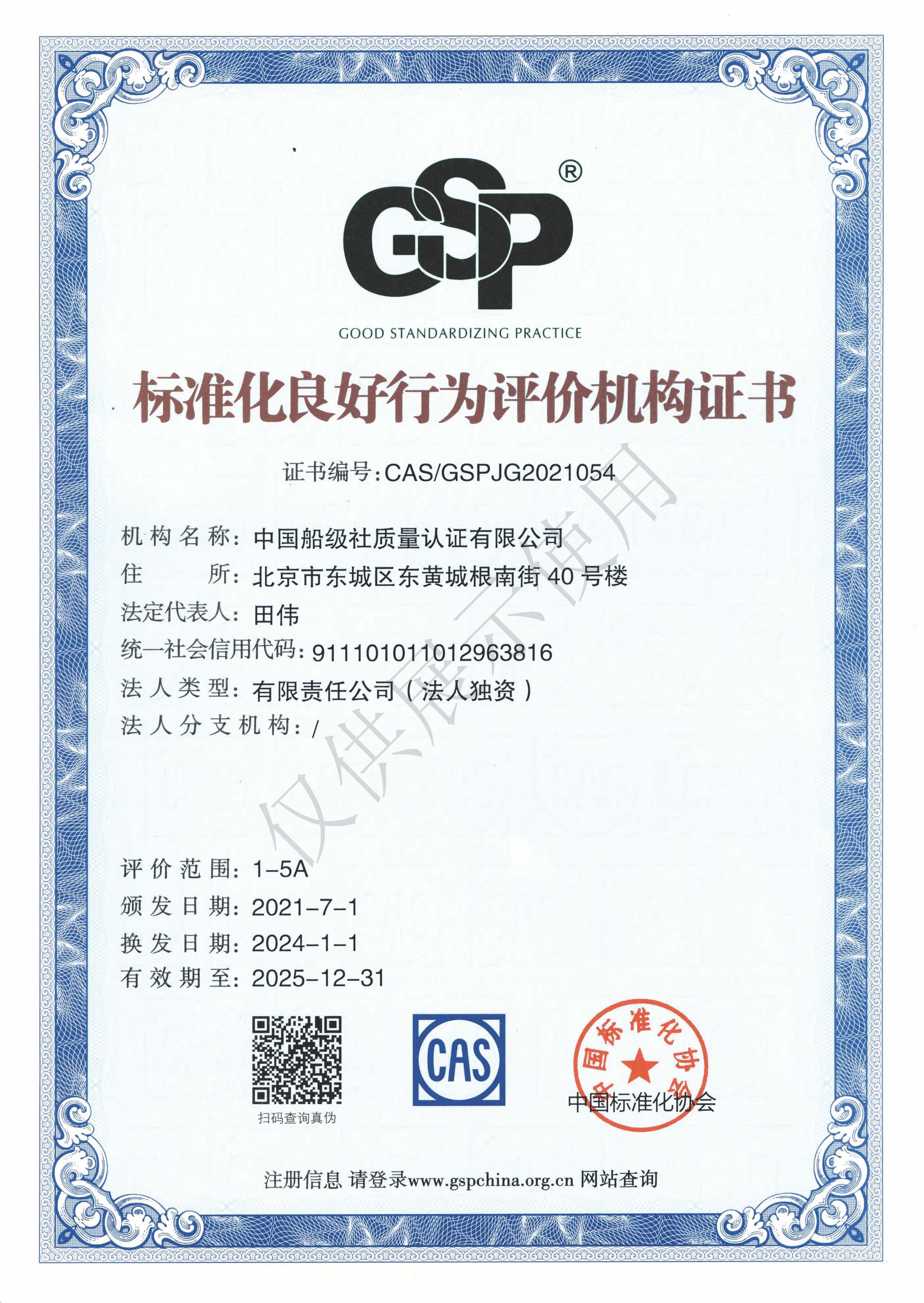 標準化良好行為評價機構證書