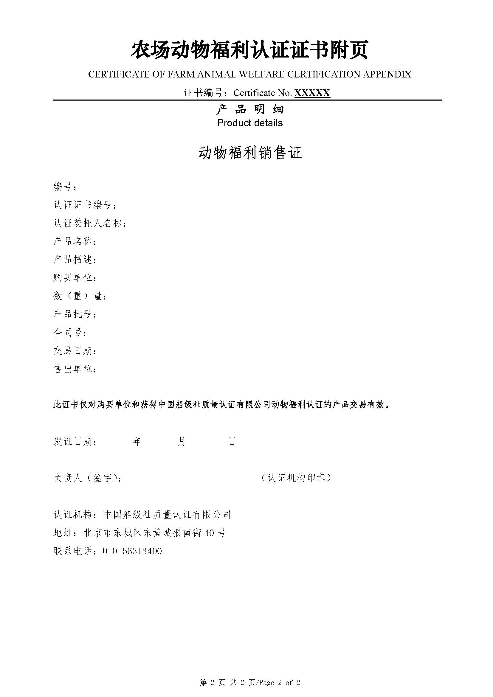 動物福利認(rèn)證證書