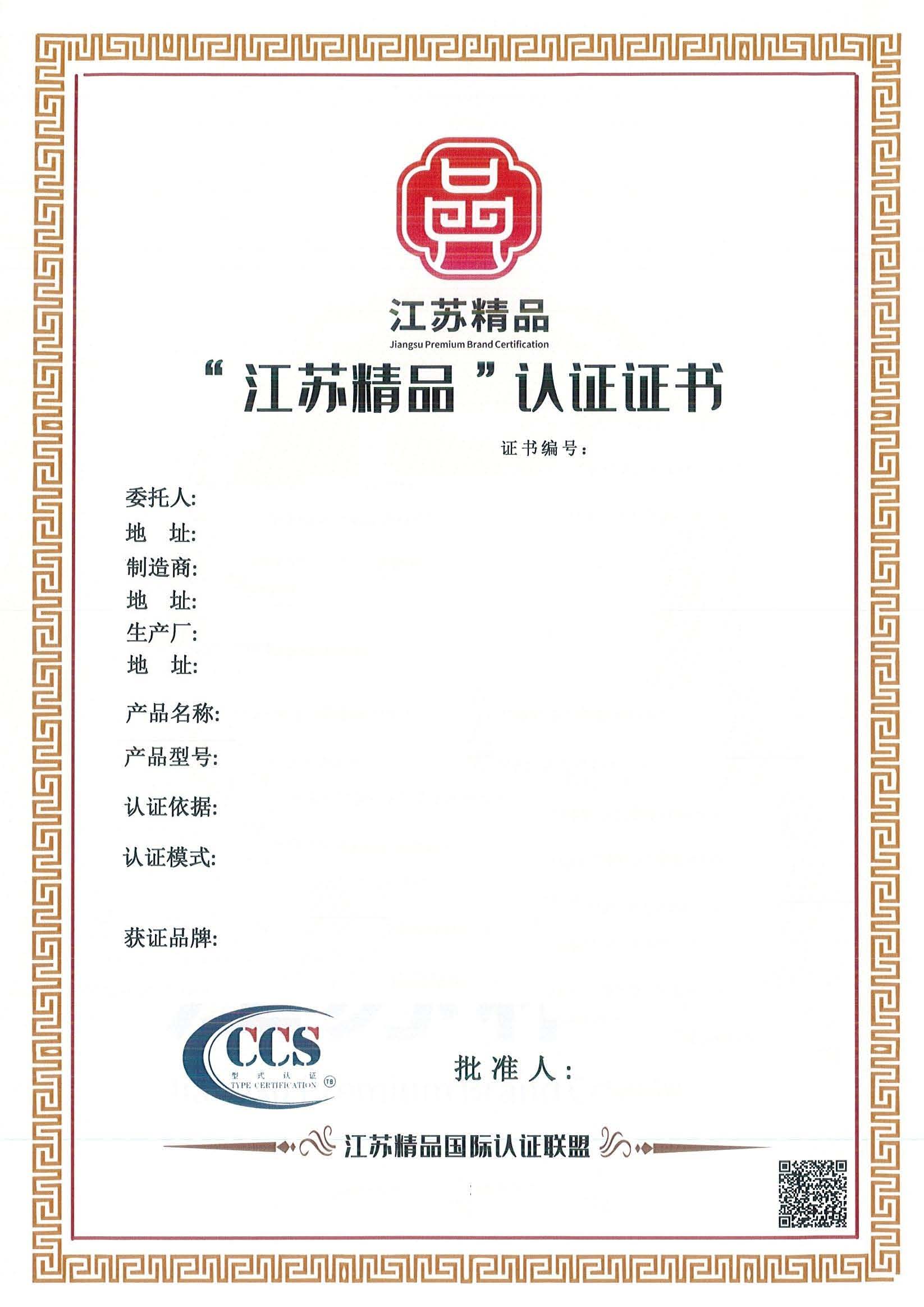 江蘇精品認(rèn)證證書