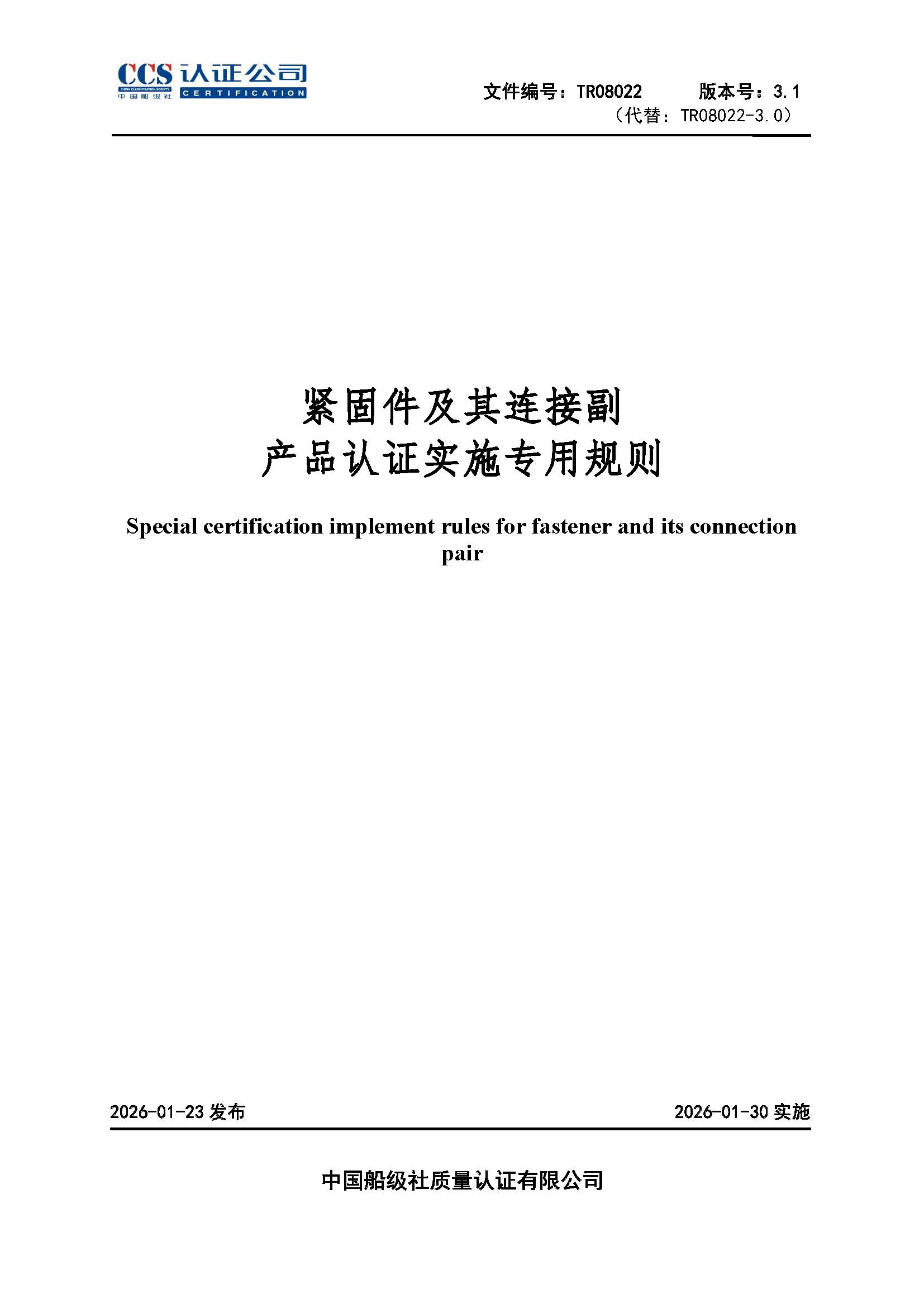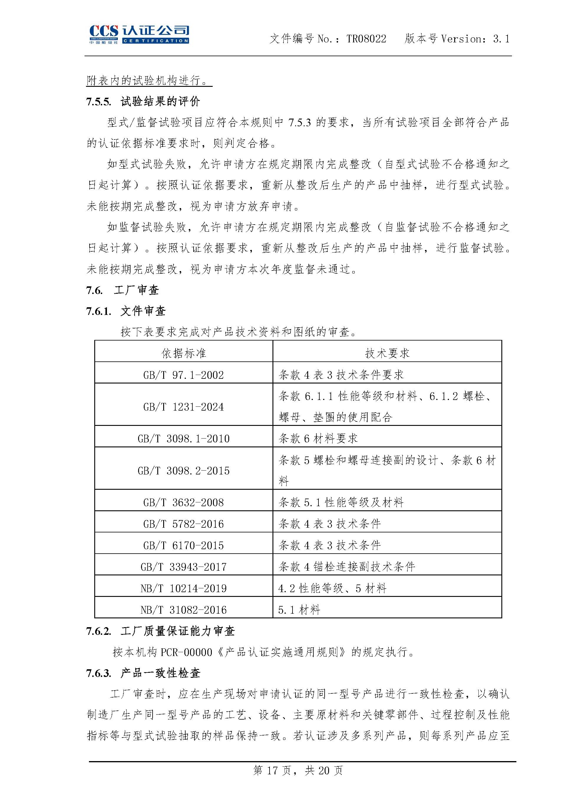 TR08022緊固件及其連接副產品認證實施專用規則3.1