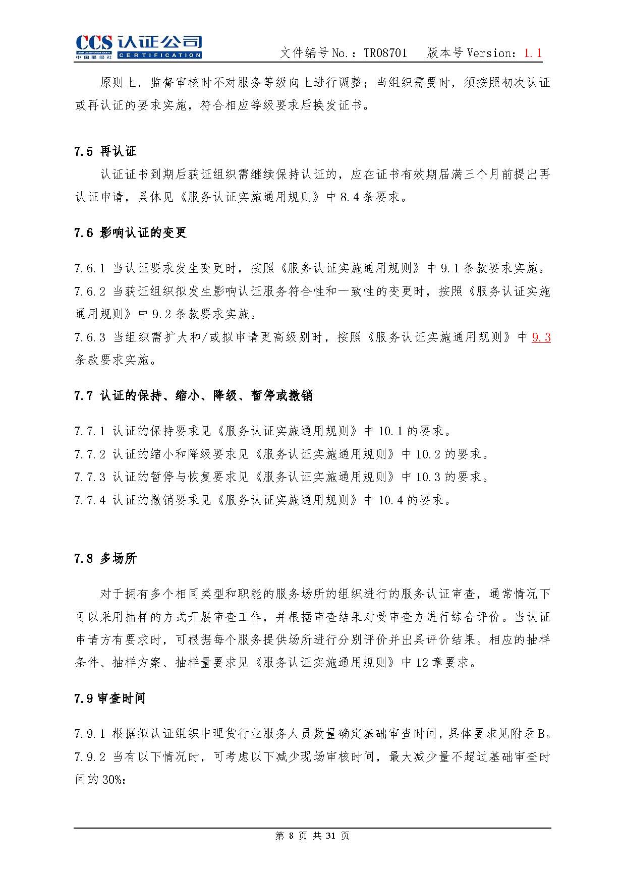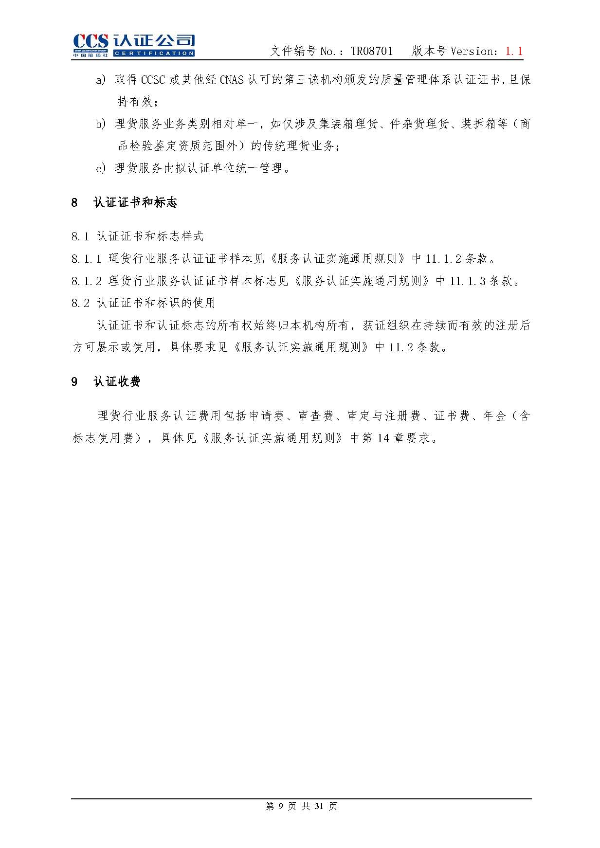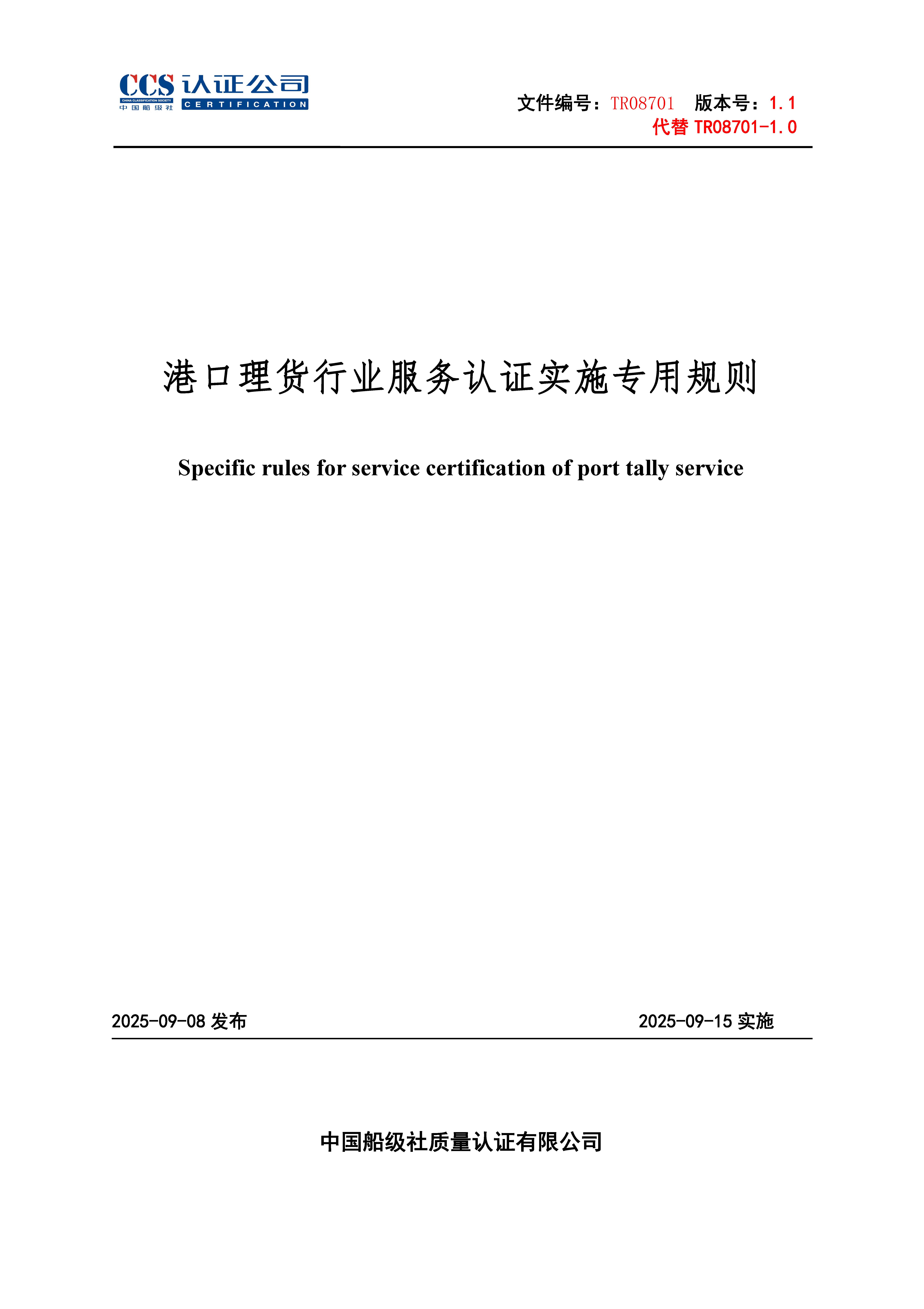 TR08701-1.1 港口理貨行業服務認證實施專用規則