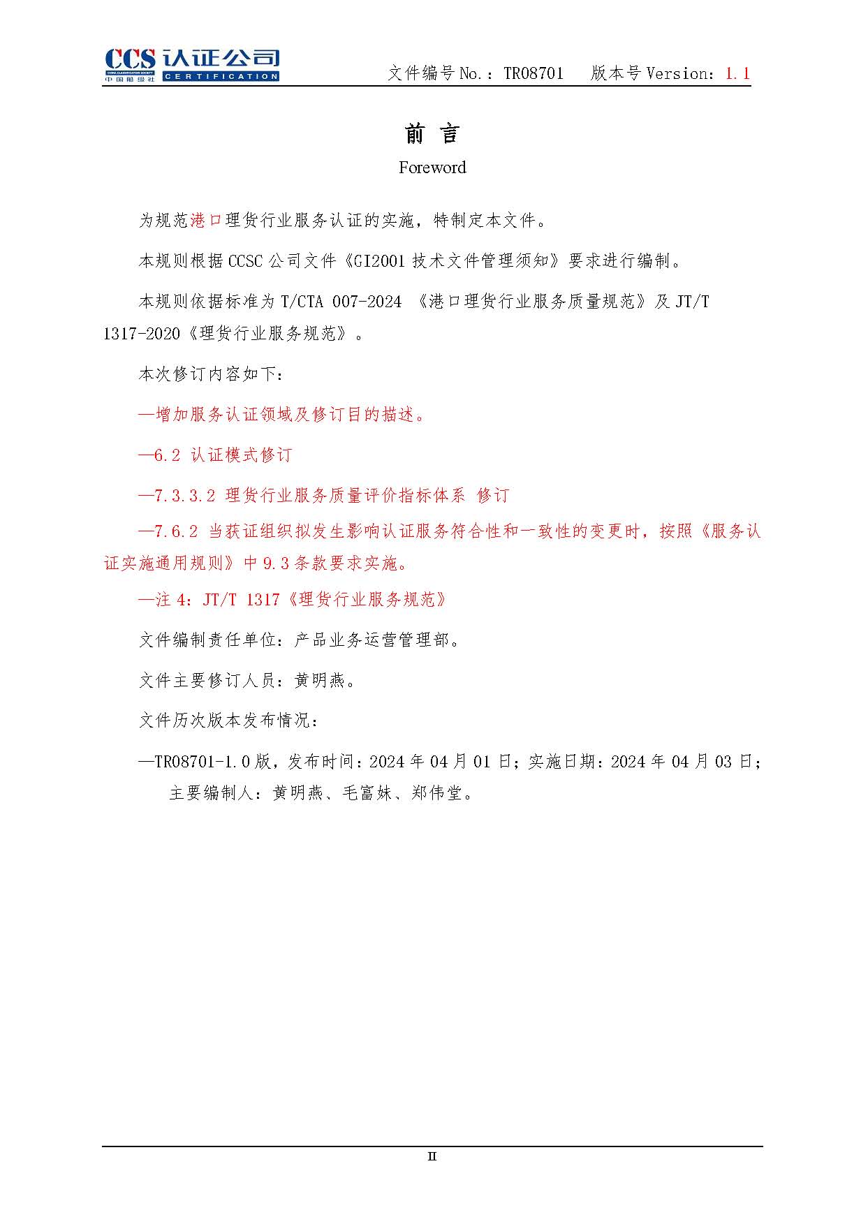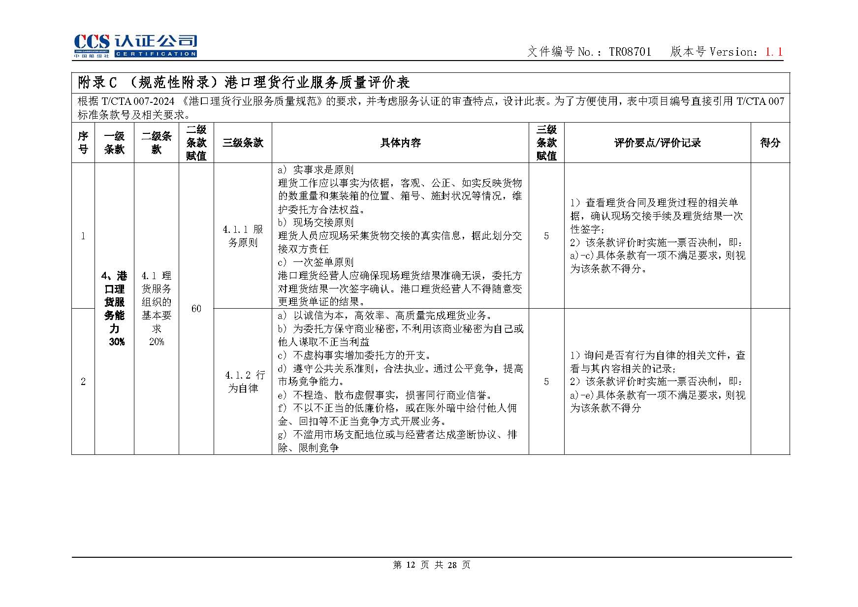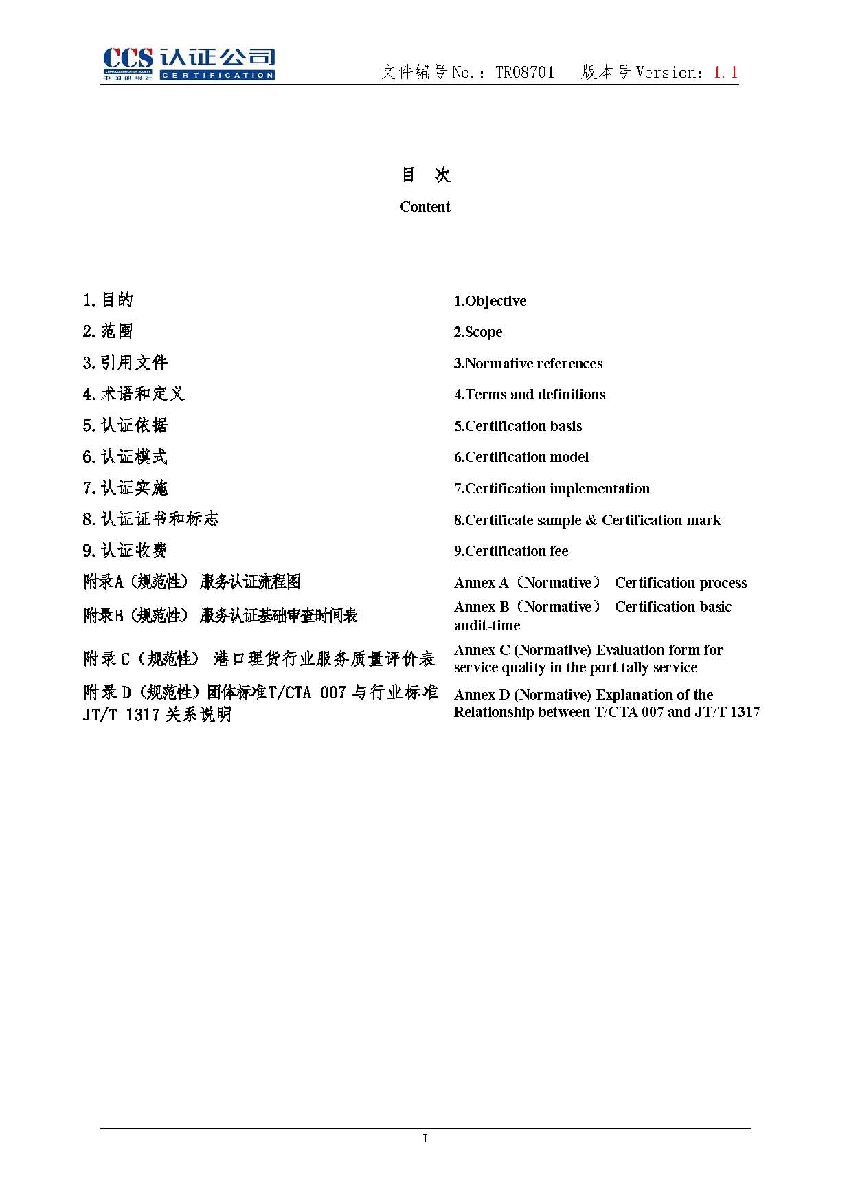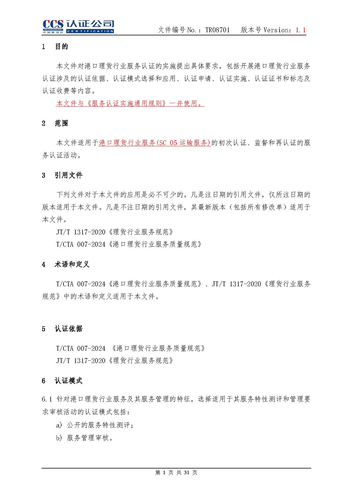 TR08701-1.1 港口理貨行業服務認證實施專用規則