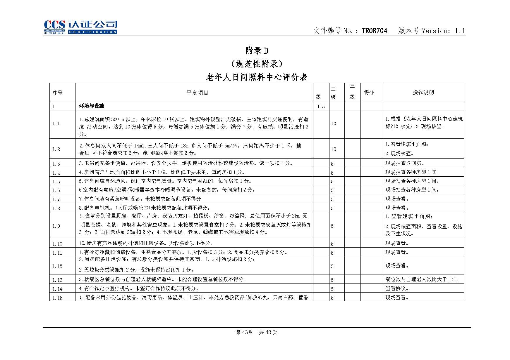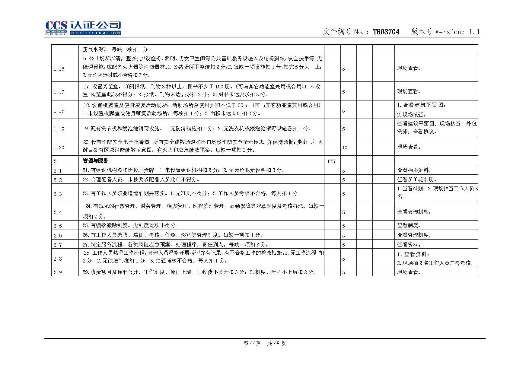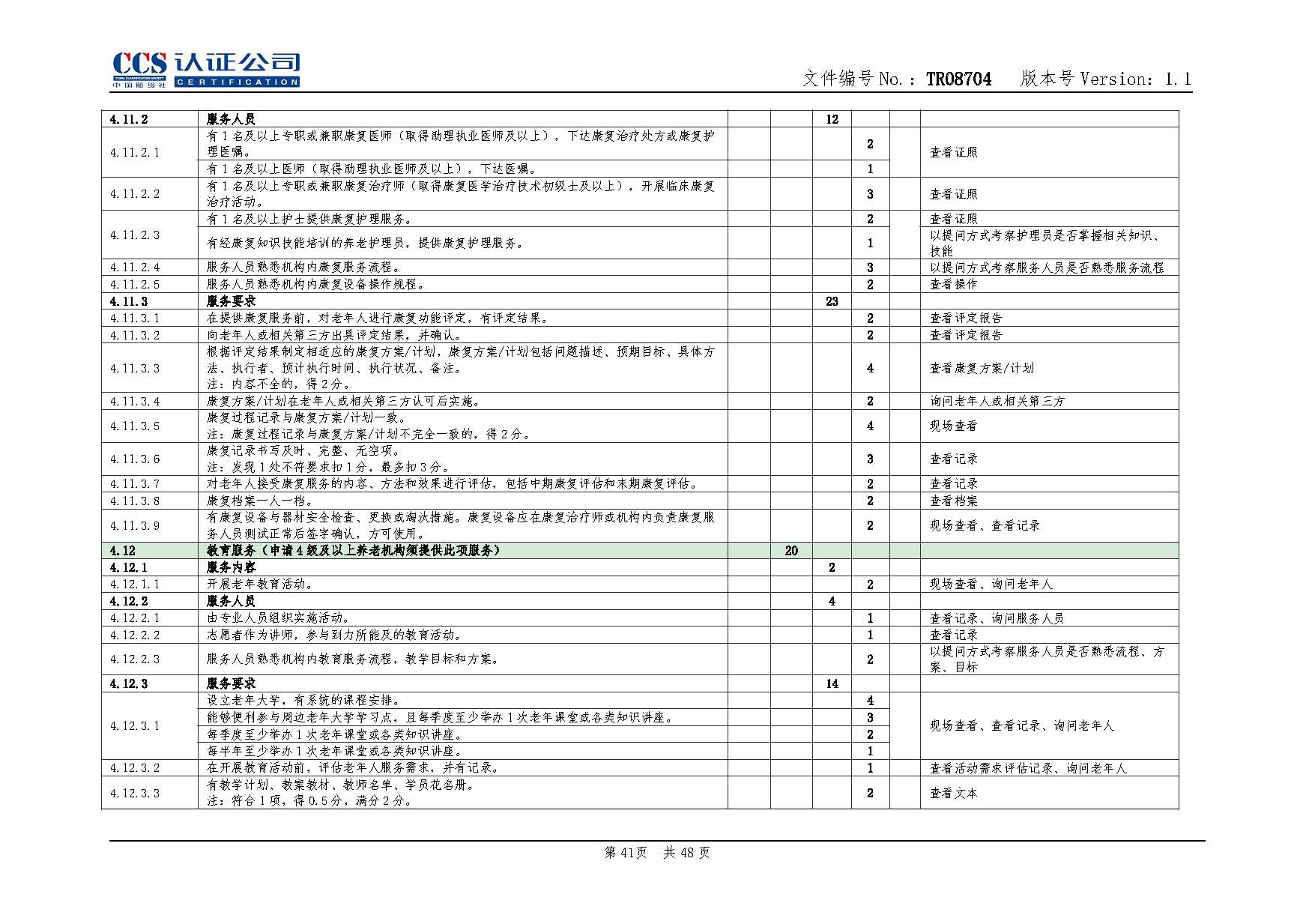 TR08704-1.1 養老服務認證實施專用規則