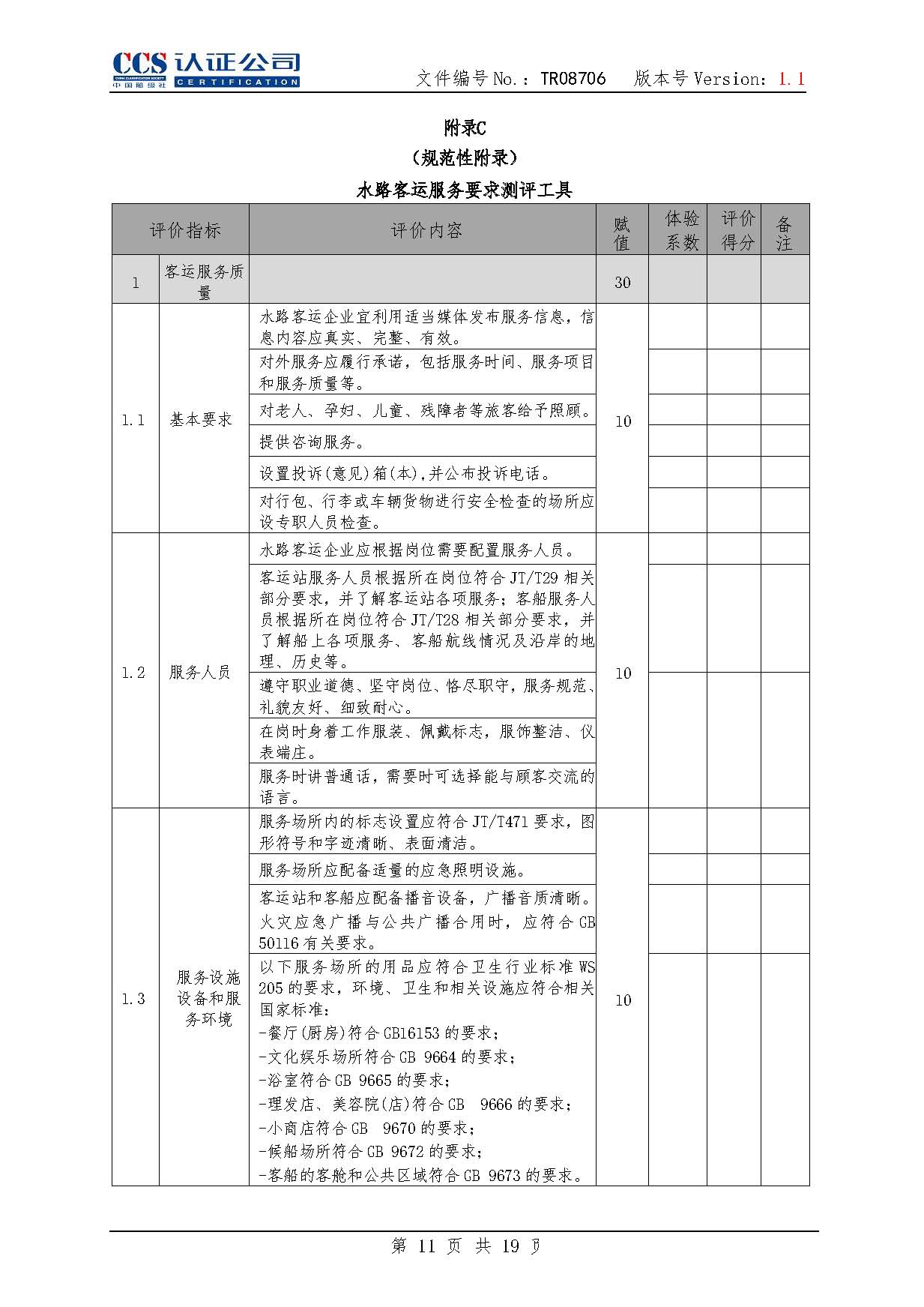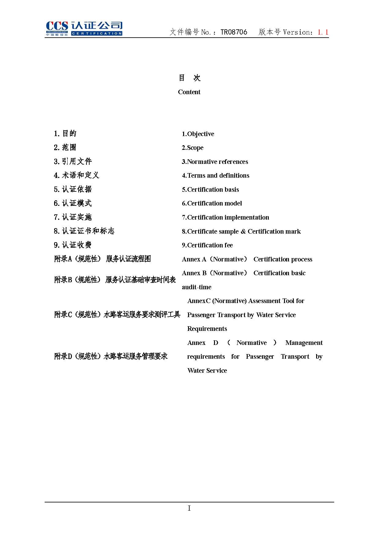 TR08706-1.1 水路客運服務認證實施專用規則