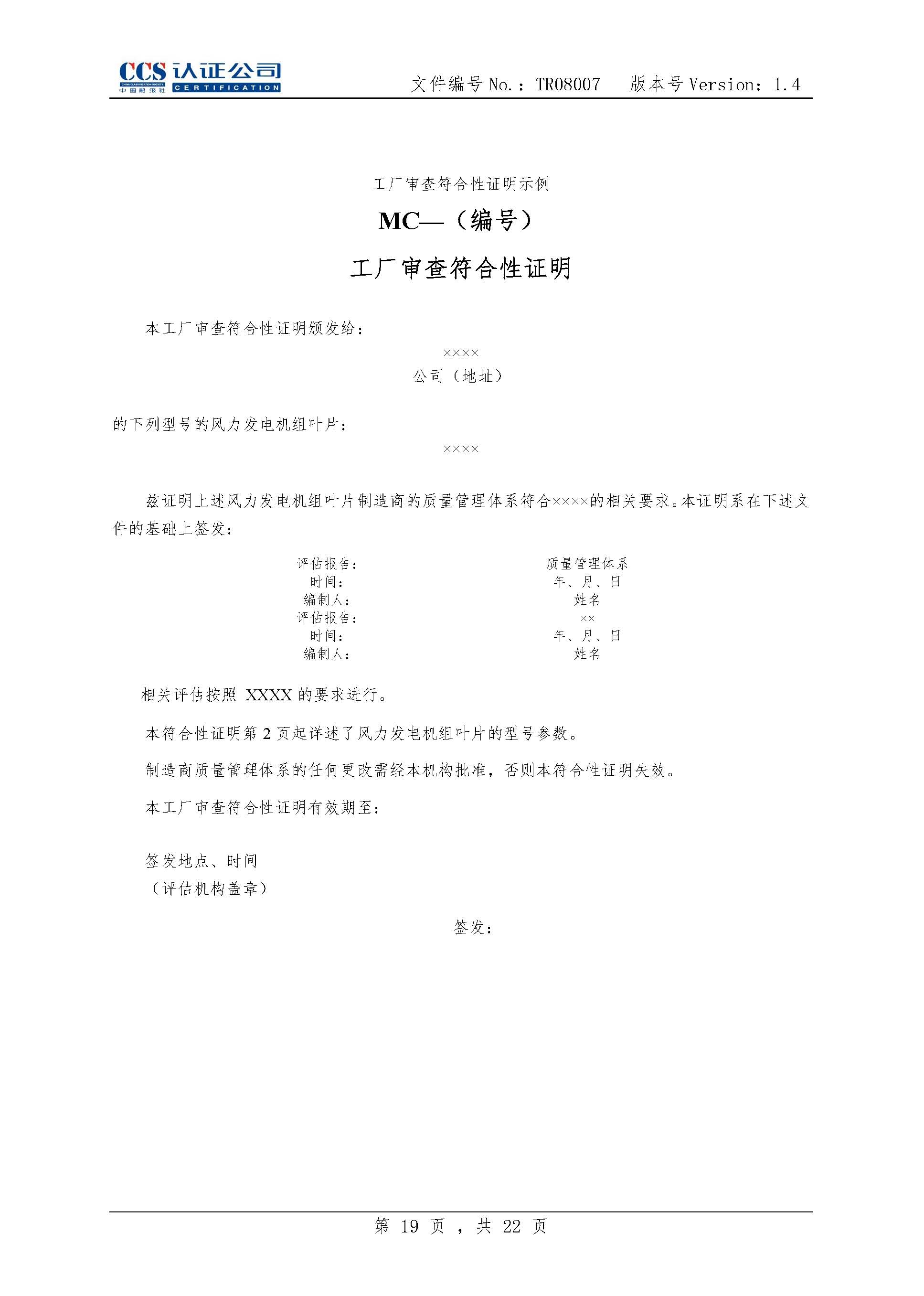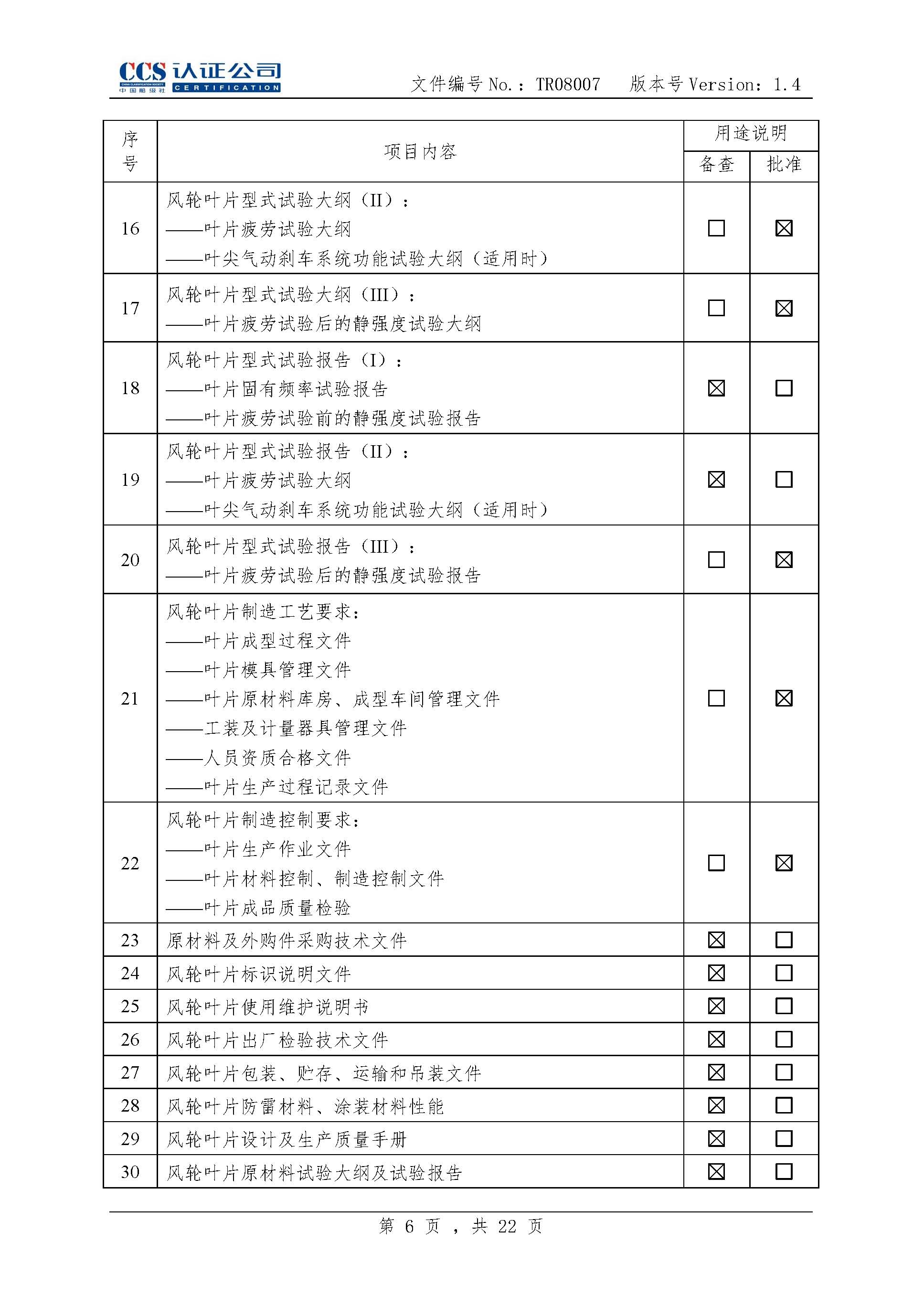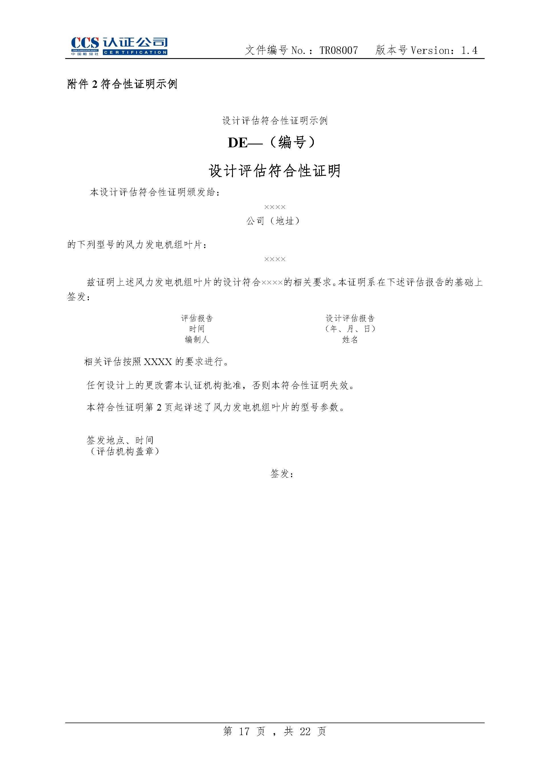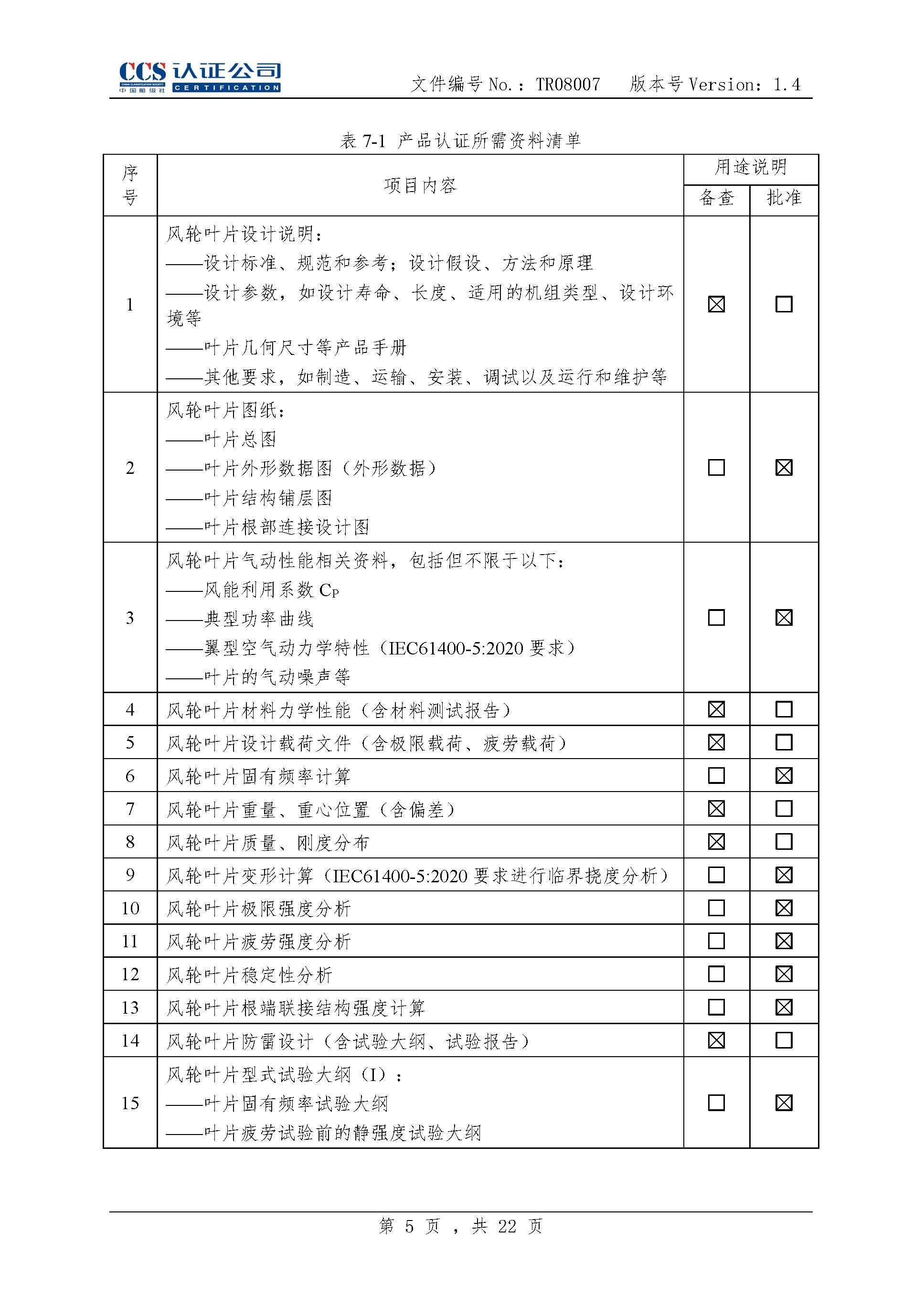 TR08007-1.4 风力发电机组风轮叶片产品认证实施专用规则