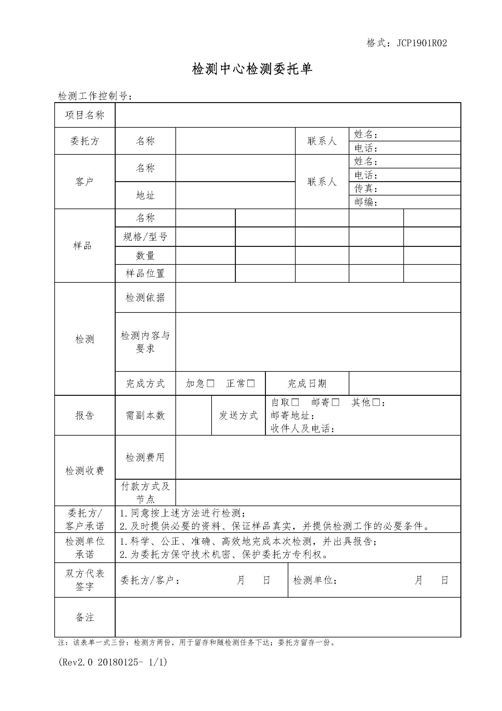 JCP1901R02檢測(cè)中心檢測(cè)委托單